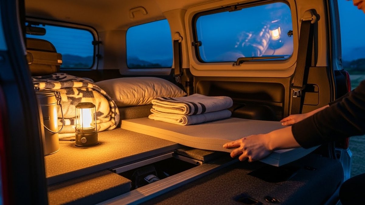 軽自動車は幅・長さが限られるため、コンパクトにまとめることが求められます。折りたたみ式のマットを縦に並べ、必要な箇所だけ厚みを増すと省スペースで済みます。