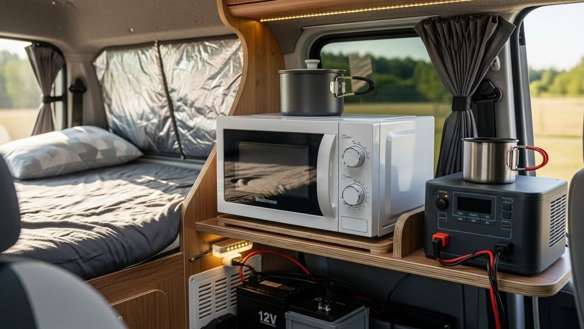 車中泊での電子レンジ利用で起きやすいトラブルと、その対応方法をまとめています。バッテリー消費が早い、インバーターが落ちる、振動でのトラブルや異音発生時の確認手順など、落ち着いて対処できるよう整理しています。