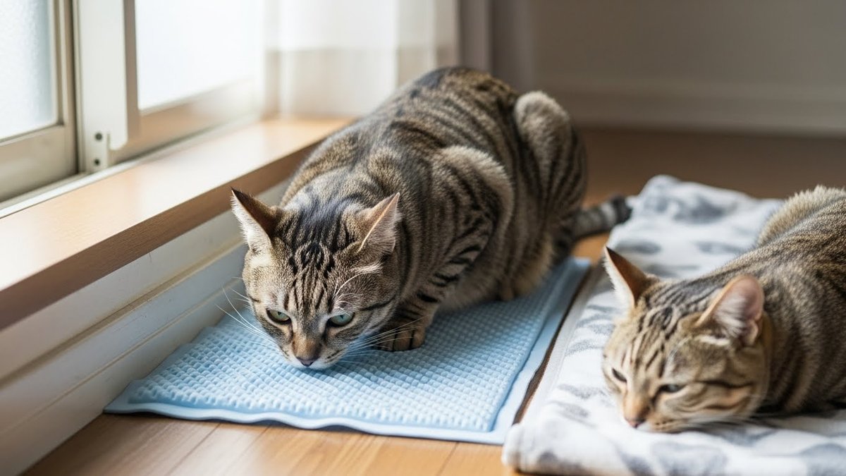 マットの冷たさが強すぎる場合は薄い布を間に挟んで温度を和らげます。最初は布を厚めにしておき、猫が慣れてきたら徐々に薄くして直接触れるように工夫します。