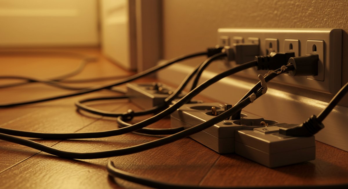 延長コードや電源タップの定格を超える使用は、ヒューズやブレーカーでは必ずしも即座に遮断されない場合があります。特に古い配線や個別回路の容量が小さい場合、定格オーバーが続くと配線の過熱や絶縁破壊につながります。