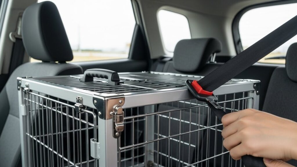 シートベルトでクレートをしっかり固定する方法|出発前のチェックポイント