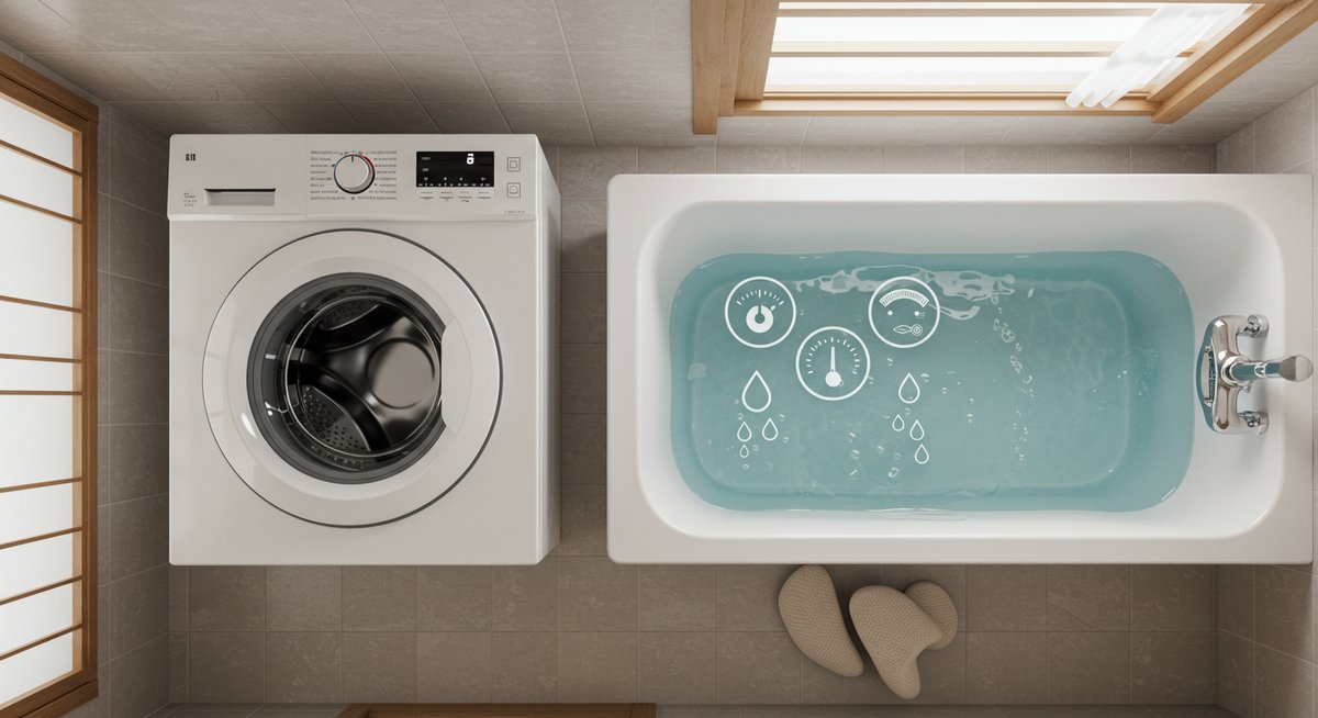 残り湯洗濯とは、入浴後の浴槽に残った水を洗濯に再利用することを指します。洗濯機の給水を止め、浴槽からホースで水を吸い上げる方法や、バケツで運ぶ方法などが一般的です。目的は主に水道使用量の削減とそれに伴う水道代の節約です。